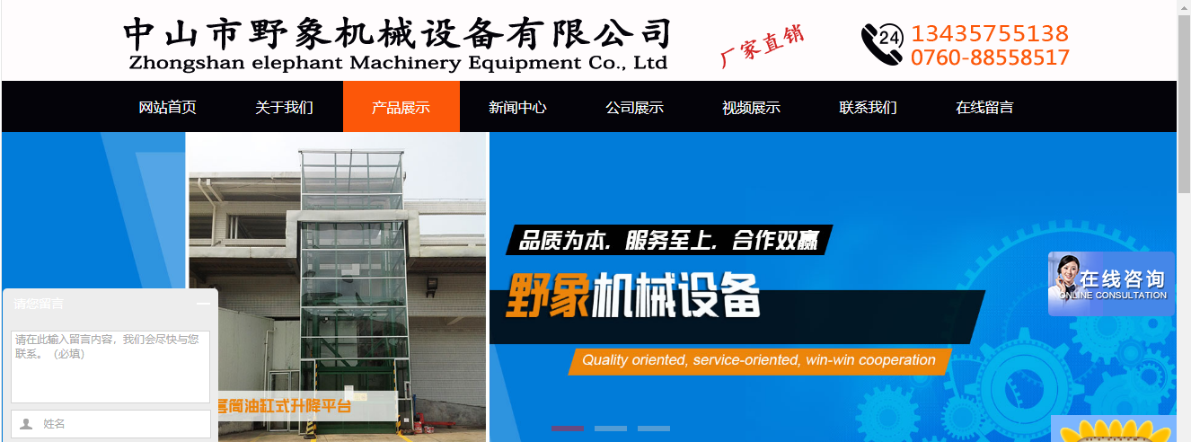 中山市野象機(jī)械設(shè)備有限公司主要產(chǎn)品是倉儲物流設(shè)備,產(chǎn)銷售后一體化管理:液壓升降平臺,升降貨梯,提升機(jī),升降舞臺,倉儲貨架等倉儲物流搬運(yùn)設(shè)備。 我們始終以“品質(zhì)為本,服務(wù)至上,合作雙贏”作為我們宗旨,隨時隨地的追蹤服務(wù)。只要你訂購了我們的產(chǎn)品,無論你身處何方,我們都會及時派出專業(yè)的技術(shù)人員為你服務(wù),你的滿意是我們的承諾。