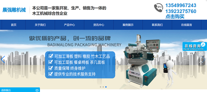佛山市晨強雕機械自動化設備有限公司始終堅持以科技求發(fā)展.以質量求勝出,以誠信求市場為理念.并以先進的制造工藝配以高精度的生產設備生產出性能優(yōu)良的產品。主要產品有自動木工仿形機系列,自動木工鏤銑機系列,木制衣架自動化機械設備系列。 展望未來,本公司將一如既往地把最實用的產品,最合理的價格,最完善的服務,真誠與廣大用戶攜手合作.共同發(fā)展.共創(chuàng)輝煌。