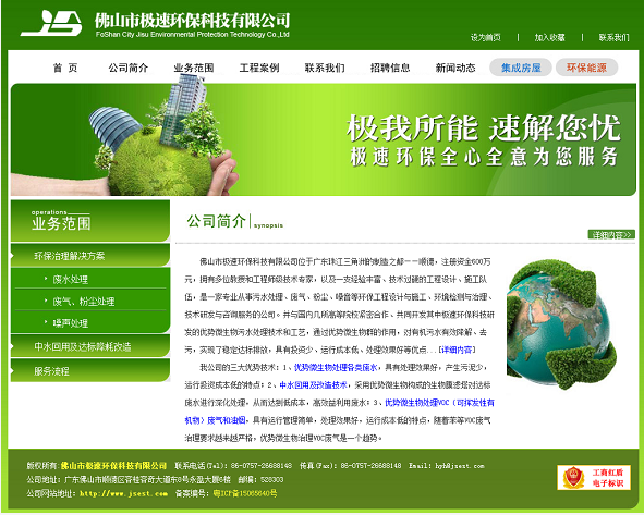 污水處理網(wǎng)站優(yōu)化作品賞析之佛山市極速環(huán)??萍加邢薰?br />