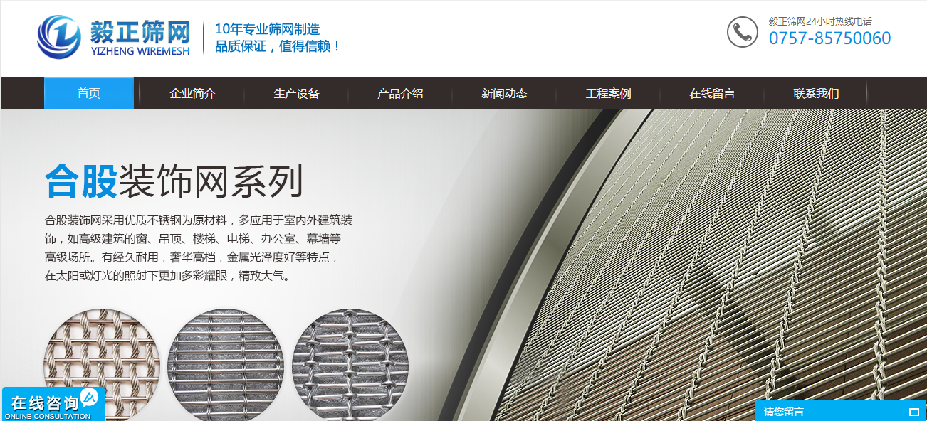 今天讓我們一起來分享一下金屬裝飾網(wǎng)網(wǎng)站建設作品:佛山市毅正篩網(wǎng)制造有限公司