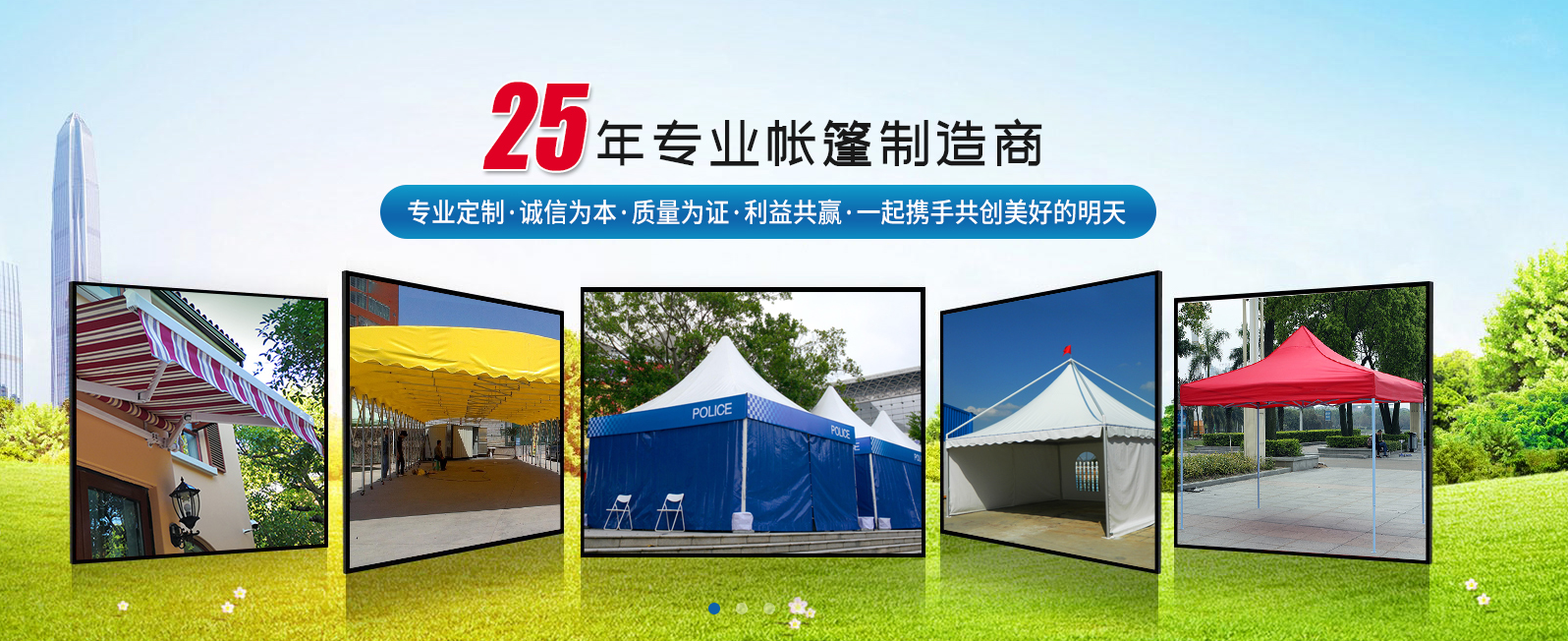 經(jīng)過十多年的開拓和發(fā)展,本公司產(chǎn)品遍布海內(nèi)外,得到了行業(yè)的高度認可。我們的主要產(chǎn)品有手動推拉篷、手動軌道推拉篷、遙控電動推拉篷、遙控電動軌道篷,尖頂篷、篷房、單邊傘、羅馬傘、木傘、救災(zāi)帳篷、廣告帳篷、等一系列戶外遮陽用品。